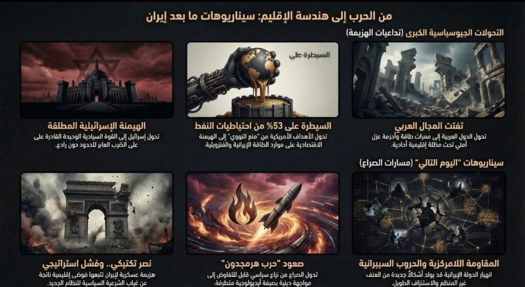 السيناريو المرجّح سياسيًا بعد هزيمة إيران سيكون: إسقاط القدرة الإيرانية على الردع من دون بناء نظام إقليمي مستقر بديل. هذا يعني تدميرًا واسعًا لقدرات الصواريخ، والبنية النووية، وشبكات القيادة، وربما فرض تسوية على طهران أو إنتاج سلطة إيرانية أضعف وأكثر اختراقًا خارجيًا. لكن التجارب المقارنة في العراق وليبيا وأفغانستان تشير إلى أن كسر الدولة لا يُنتج تلقائيًا نظامًا مستقرًا؛ بل غالبًا يفتح فراغًا تتنازع عليه النخب المحلية، والأجهزة القديمة، والفواعل العابرة للحدود. وها هنا تكون “الانتصار العسكري” بداية أزمة جديدة لا نهايتها.